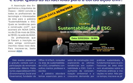 Com a iniciativa, a AEAO reforça seu compromisso em apoiar o desenvolvimento profissional e acadêmico de engenheiros e arquitetos, ampliando o acesso a conhecimentos atualizados e ferramentas que acompanham as transformações do mercado.