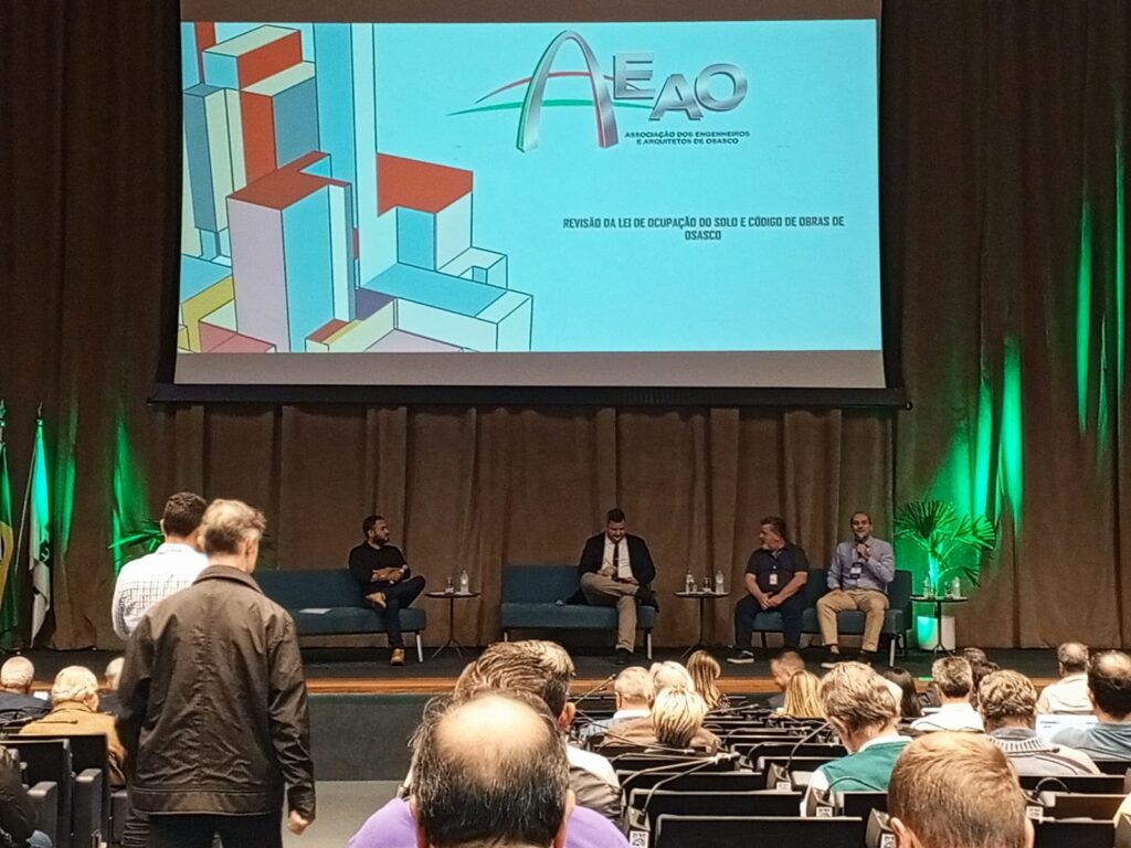 A AEAO foi destaque no evento ao apresentar o projeto “Revisão da lei de ocupação do solo e código de obras de Osasco”, desenvolvido em parceria com a Prefeitura Municipal de Osasco (PMO). A apresentação foi conduzida pelo presidente da AEAO, Paulo Fiorita, e pelo secretário, Leandro Fogaça, que compartilharam detalhes da proposta com lideranças de todo o Brasil, reforçando o papel da associação como agente ativo no desenvolvimento urbano e na valorização das profissões da área tecnológica.