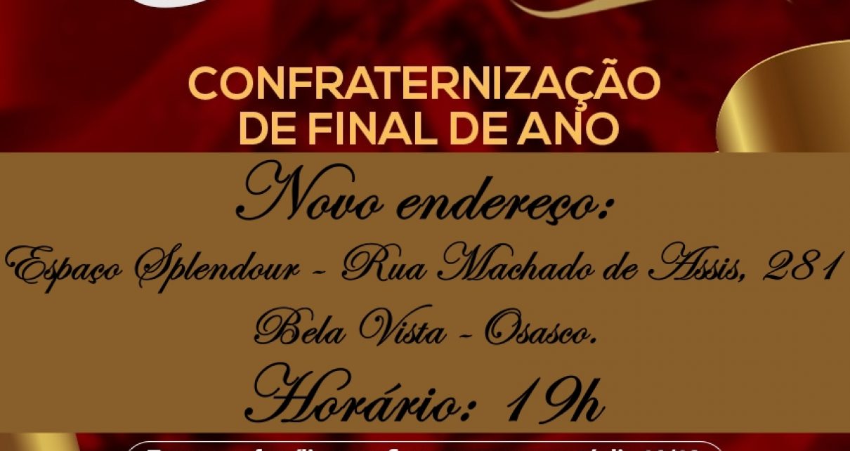 Agora o evento será realizado às 19 horas, no Espaço Splendour, localizado na Rua Machado de Assis, 281, Bela Vista, em Osasco.