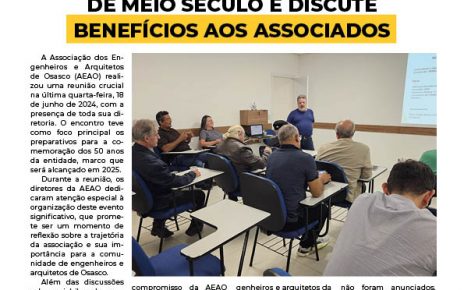 Nesta edição você confere: -Reunião especial sobre a festa de 50 anos da AEAO -Editorial inspirador do nosso presidente -Conheça a diretoria da AEAO -Descubra todos os benefícios exclusivos para associados Não perca essa edição! Acesse agora mesmo!
