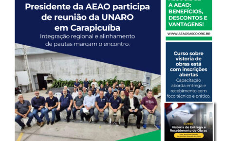 A nova edição destaca a atuação institucional da AEAO na região e temas relevantes para o desenvolvimento técnico e sustentável. Confira os destaques: * Participação do presidente da AEAO na reunião da UNARO, fortalecendo a integração regional * Curso sobre vistoria de obras com inscrições abertas * AEAO passa a integrar o COMDEMA com novos […]