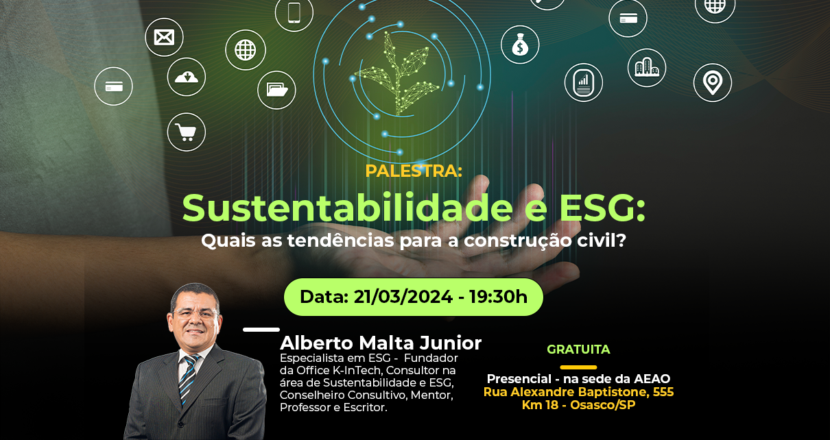 A Associação dos Engenheiros e Arquitetos de Osasco – AEAO convida a todos os profissionais de tecnologia e interessados da área para a palestra “Sustentabilidade e ESG: Quais as tendências para a construção civil?”, que ocorrerá no dia 21 de março de 2024, às 19h30, na sede da AEAO. Este evento presencial e gratuito contará […]