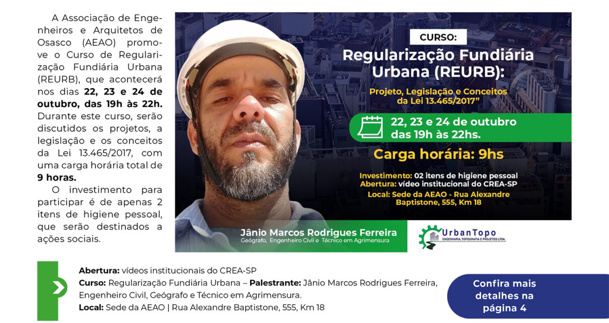 A Associação dos Engenheiros e Arquitetos de Osasco (AEAO) traz para você mais uma edição recheada de informações e eventos imperdíveis! Confira o que preparamos: